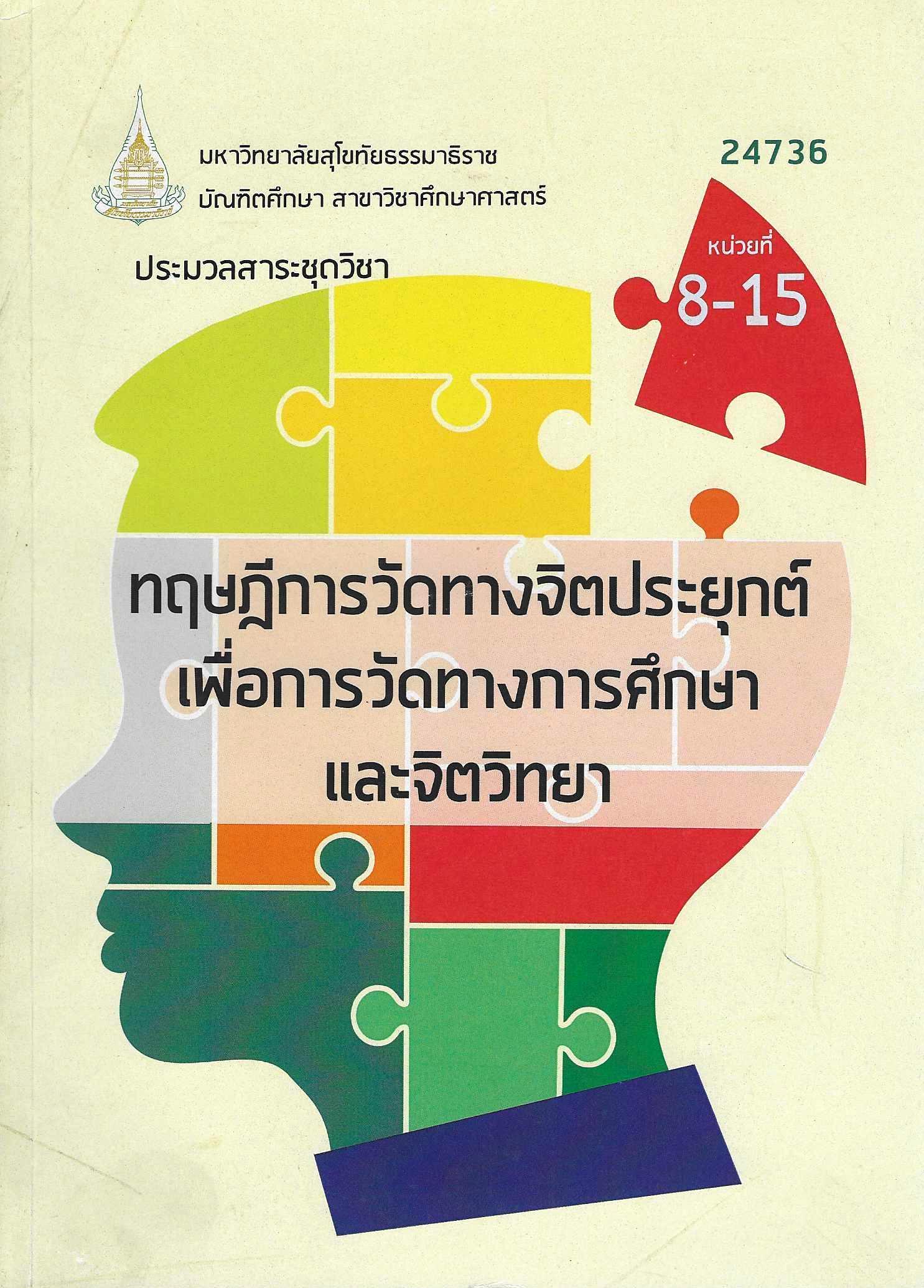 ประมวลสาระชุดวิชาทฤษฎีการวัดทางจิตประยุกต์เพื่อการวัดทางการศึกษาและจิตวิทยา หน่วยที่ 8-15 (24736) = Applied Psychometric Theories for Educational and Psychological Measurement ans Assessment / มหาวิทยาลัยสุโขทัยธรรมาธิราช บัณฑิตศึกษา สาขาวิชาศึกษาศาสตร์.